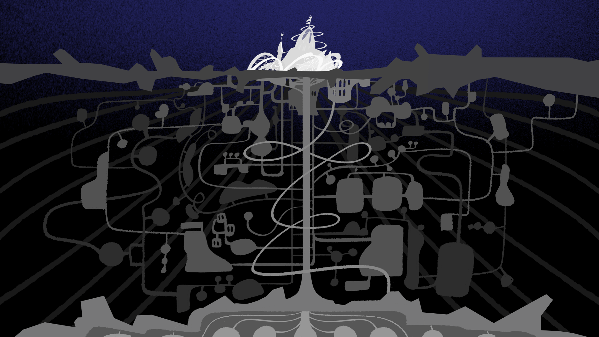 Eden follows a character who chases a mysterious figure through a whimsical forest, only to discover they are stuck in a fungus infested loop.